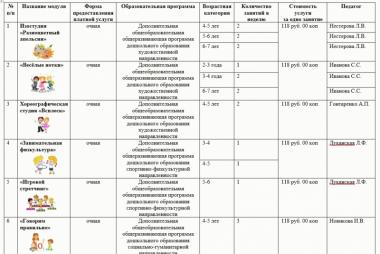 Перечень платных образовательных услуг в МДОУ "Детский сад №120" на 2025-2026 учебный год